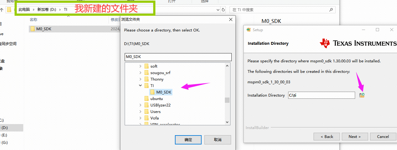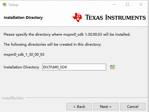 设置SDK的安装位置。(我在D盘中新建了一个TI的文件夹,专门用于保存TI的文件)