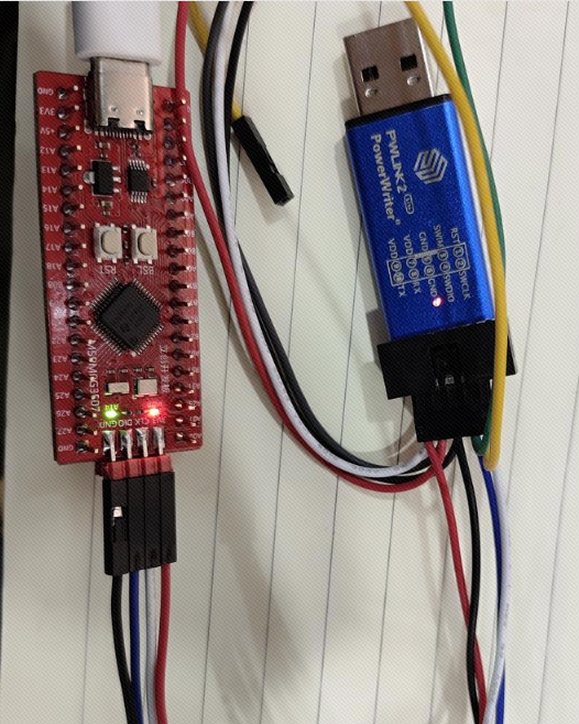 确认修改成功后,我们将代码烧录开发板中即可。这里我使用创芯工坊的DAP-LINK连接开发板。