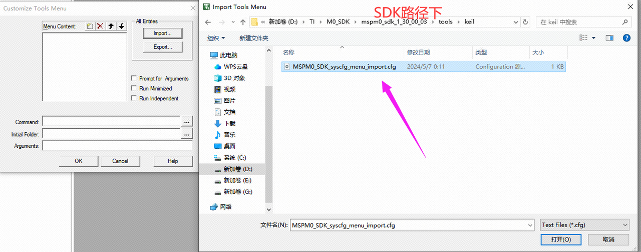 ,然后打开 MSPM0_SDK_syscfg_menu_import.cfg
