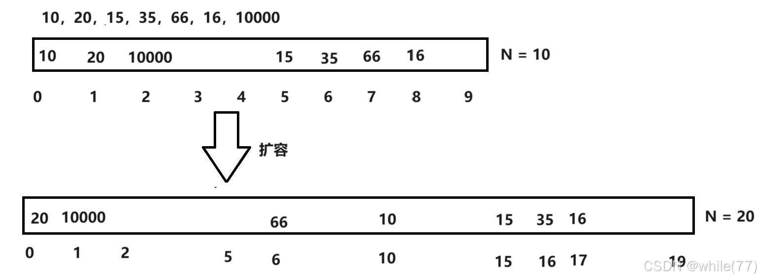 此时当哈希表满了时,会出现死循环,所以,需要对哈希表进行扩容操作