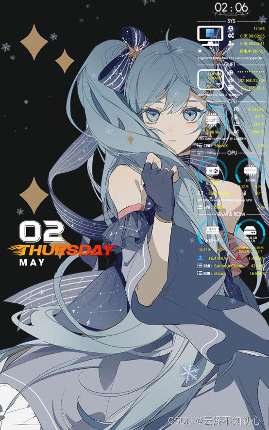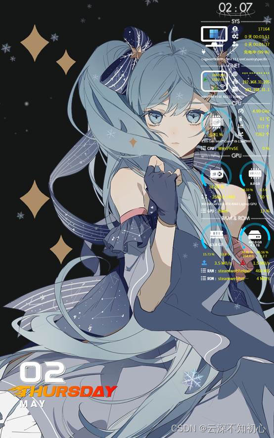 这里以Rainmeter举例,Rainmeter是一款桌面美化软件,由于软件中的“详细系统监控”插件需要管理员身份来获取CPU、GPU的温度,因此,我不得不使用任务计划程序来令其进行开机自启。