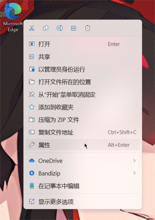 1.右键点击该程序的桌面快捷方式(或该文件),选择“属性”。