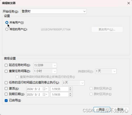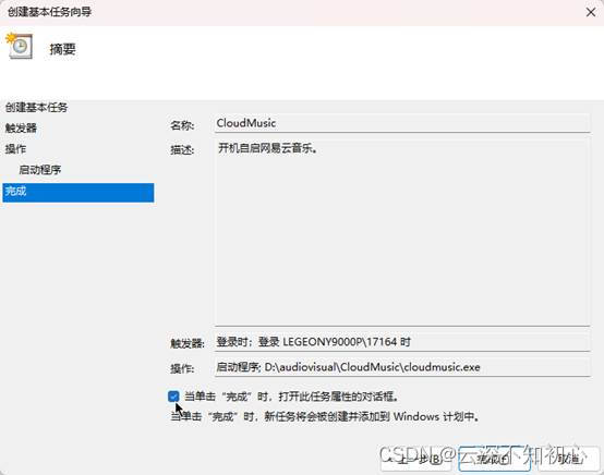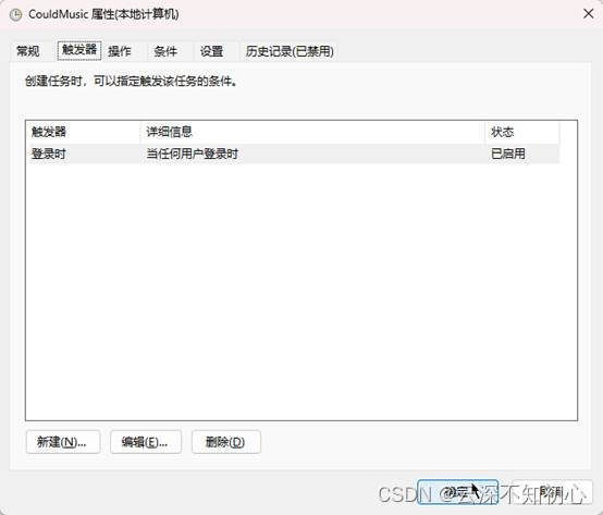 备注:如果不再需要开机自启程序,在任务计划程序中将其找到并删除即可。