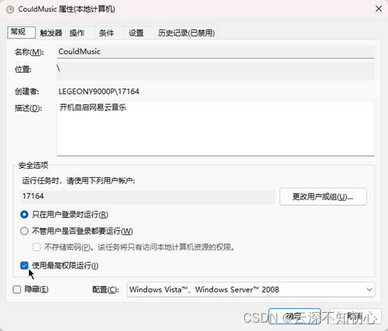 在日常使用电脑中,经常会有需要开机自启的应用程序,然而,当部分应用程序(如添加betterNCM美化插件的网易云音乐等)需要使用管理员身份开机自启动时,在软件里勾选的“开机自动运行程序”将在开机时无法直接运行,只能点击相应的应用程序后,程序才能正常启动。这时,我们就可以使用windows任务计划程序来进行开机自启。