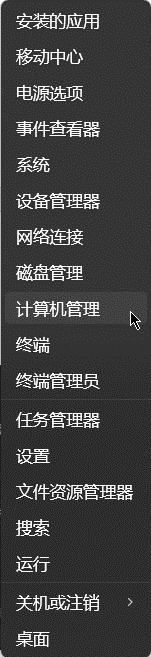 1按住Win+X打开开始菜单栏,点击“计算机管理”。