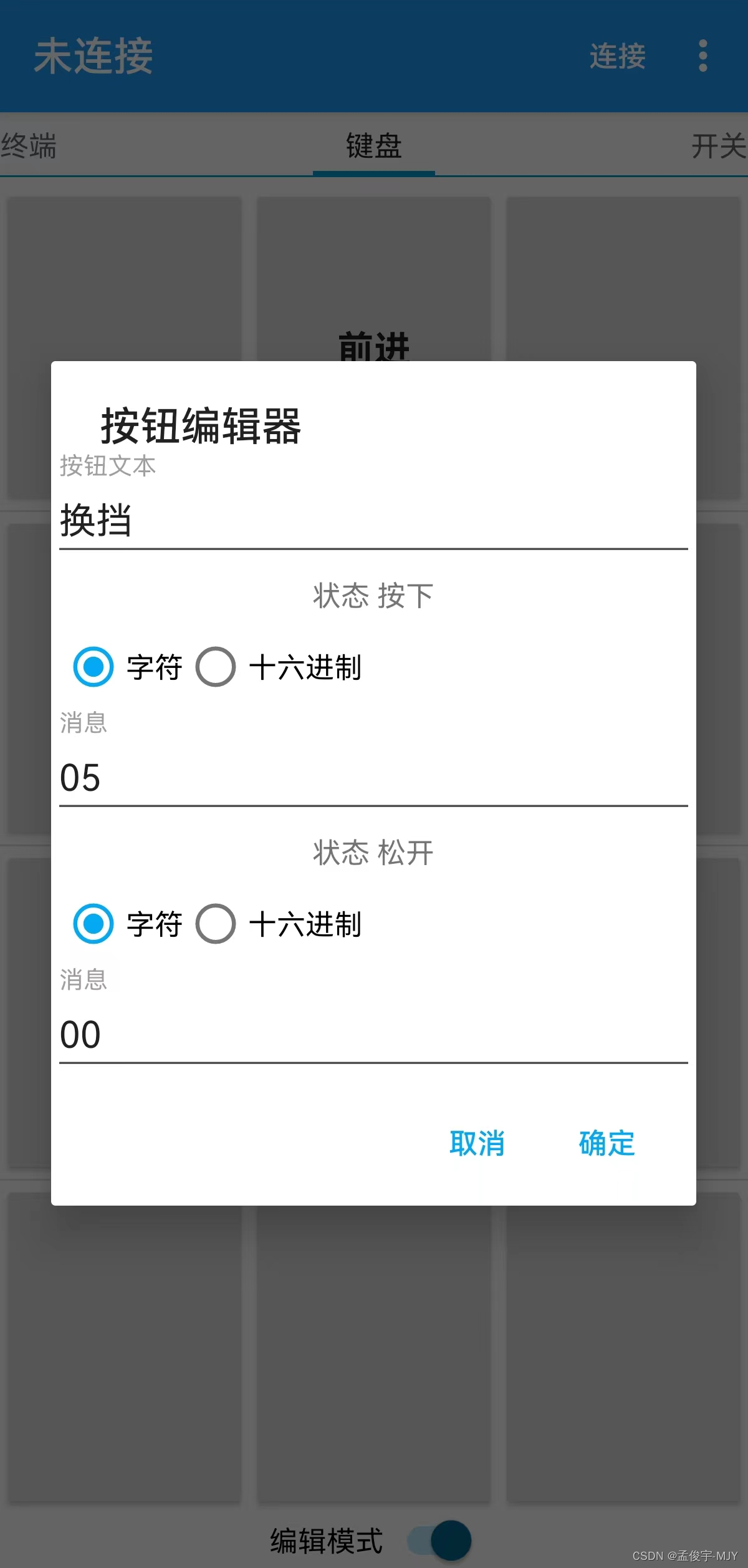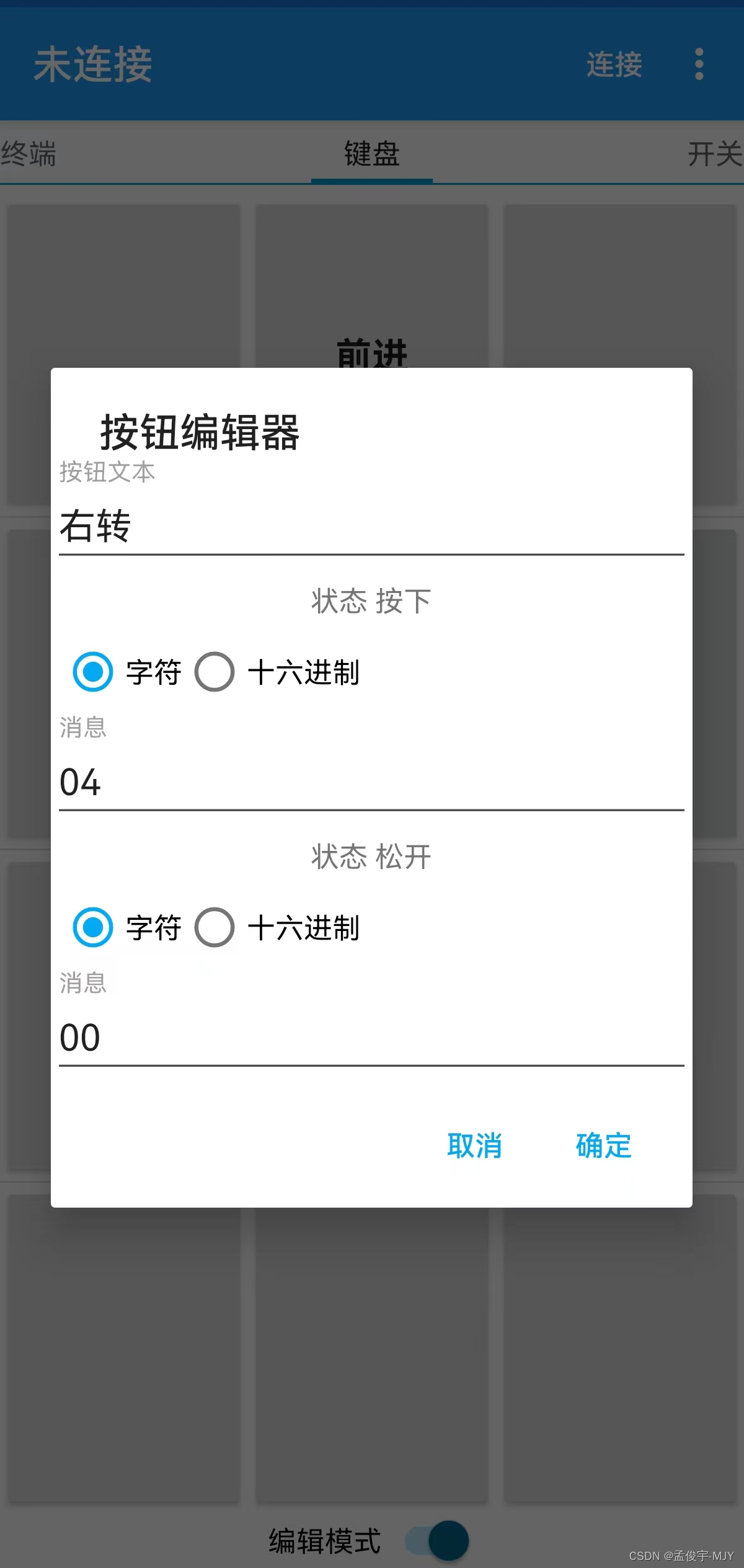 (1).打开蓝牙串口APP,点击键盘,创建如下五个键位