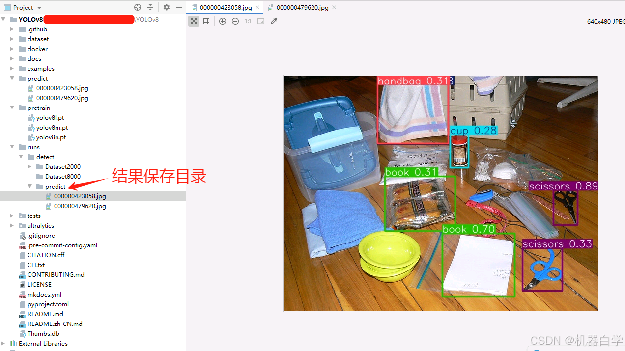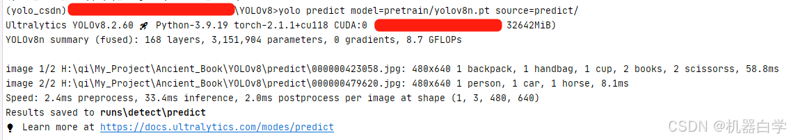 # 预测实测指令 yolo predict model=pretrain/yolov8n.pt source=predict/