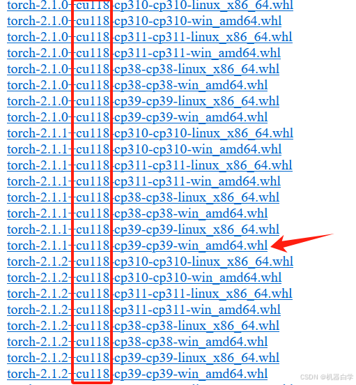 要选择有 cu 的GPU版本下载,选择对应的python版本和系统,要下三个安装包分别是 torch 、torchaudio、torchvision,其版本的对应关系直接去官网查看即可。具体安装流程可参考之前博文:pytorch离线安装