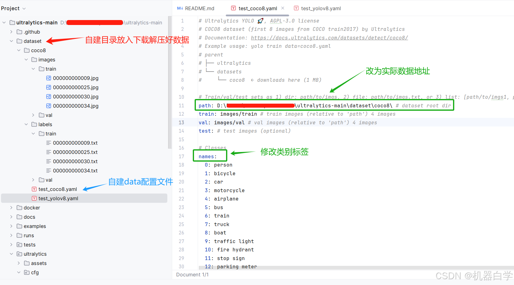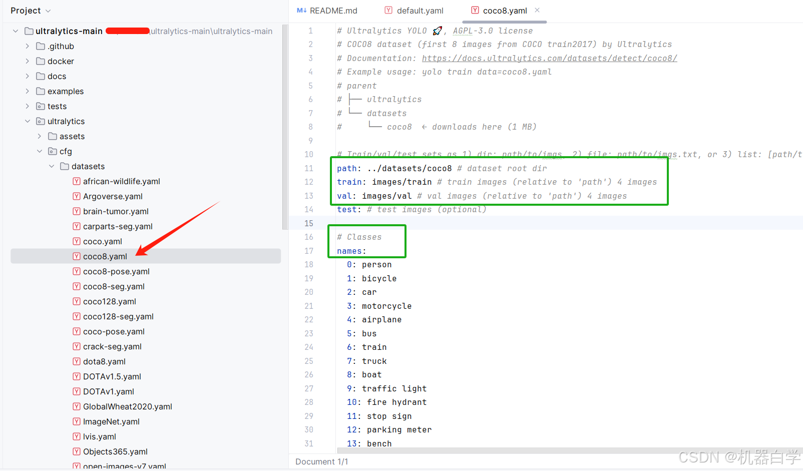 # coco8.yaml 数据配置文件目录 /ultralytics-main/ultralytics/cfg/datasets/coco8.yaml