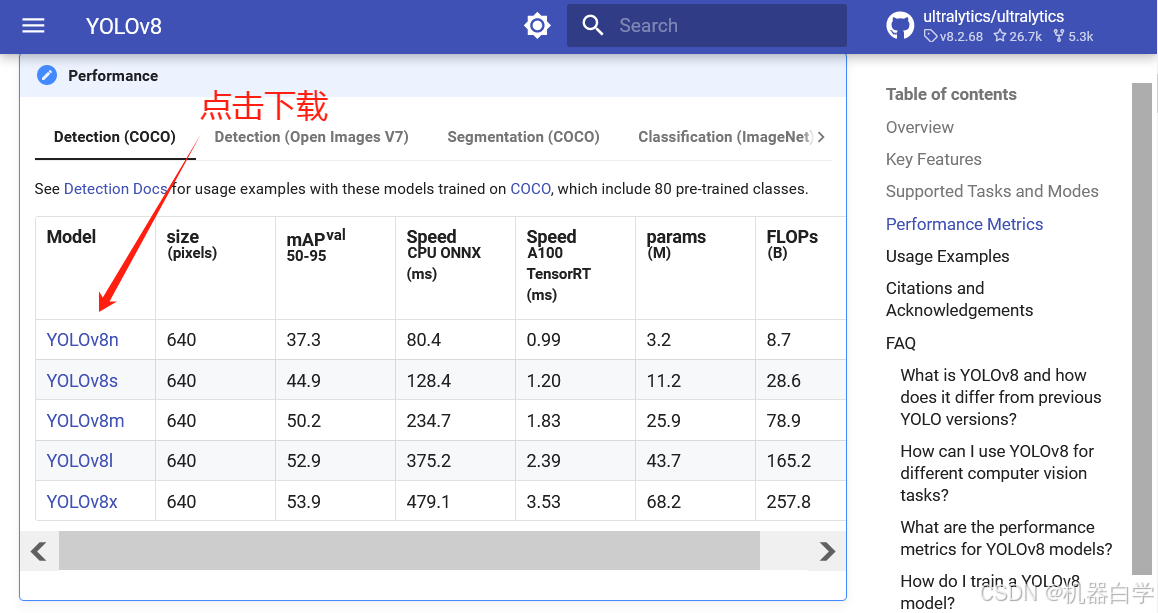 官方训练模型参数下载地址:yolov8模型参数下载地址