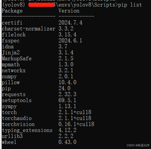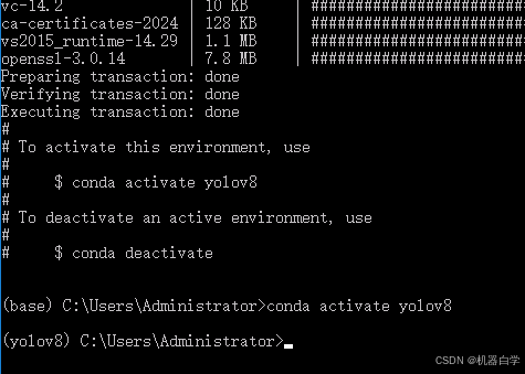 # Prompt创建虚拟环境 conda create -n yolov8 python=3.9 # 激活环境 conda activate yolov8