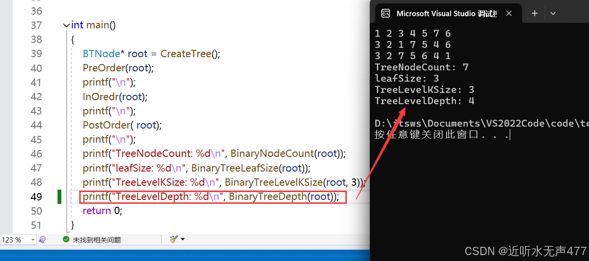 //⼆叉树的深度/⾼度 int BinaryTreeDepth(BTNode* root);