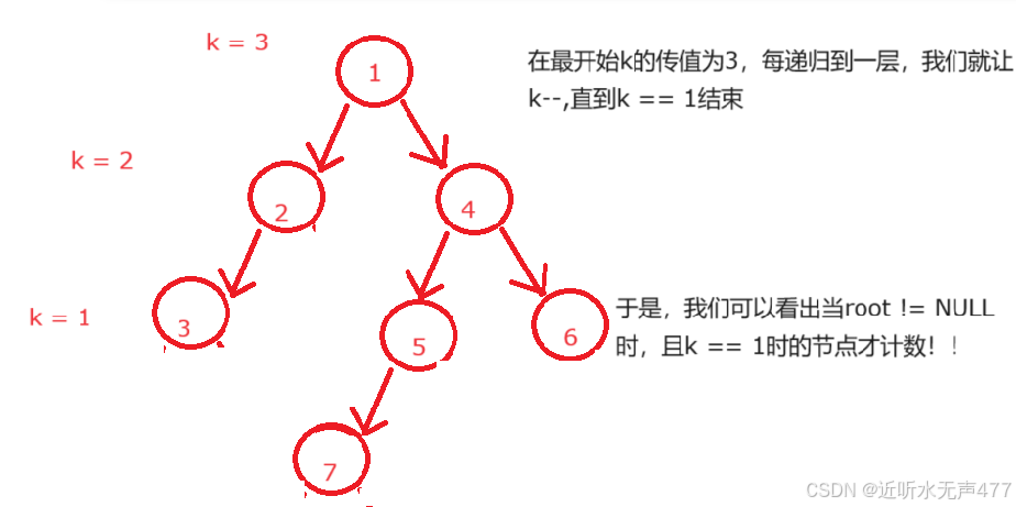 我们要得到二叉树第K层节点的个数,其实也并不难,我们还是通过画图的方式来解析过程。