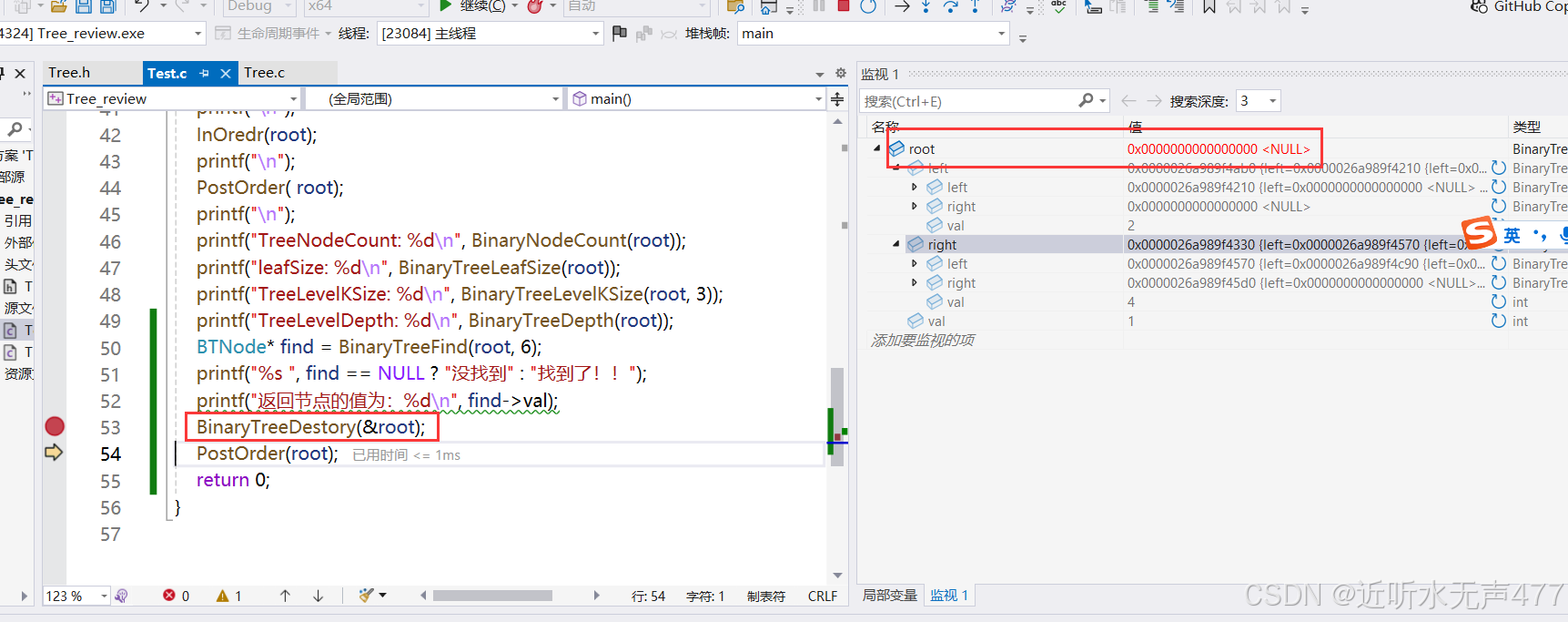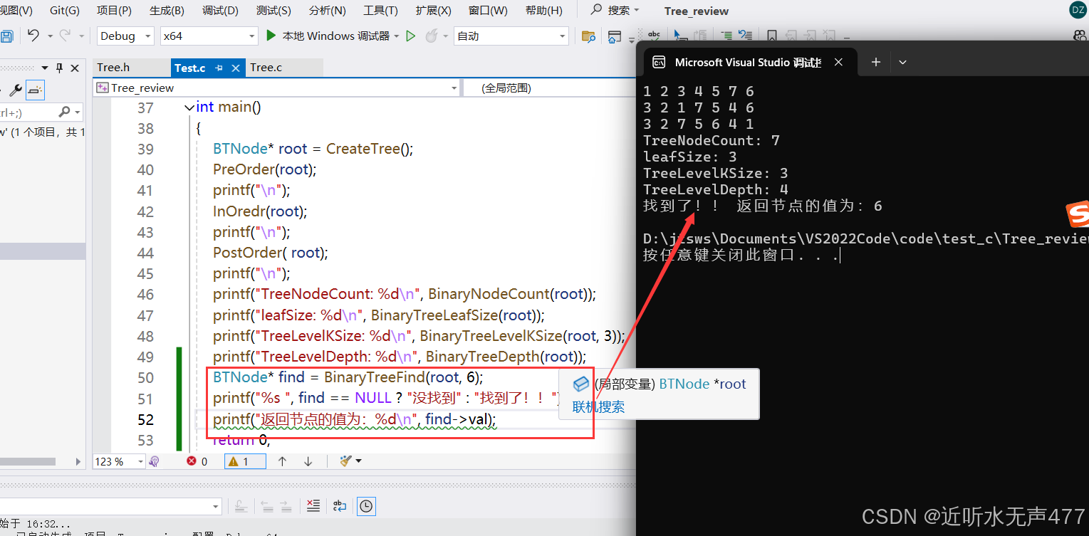 可知其成功的找到了,值为6的节点!!