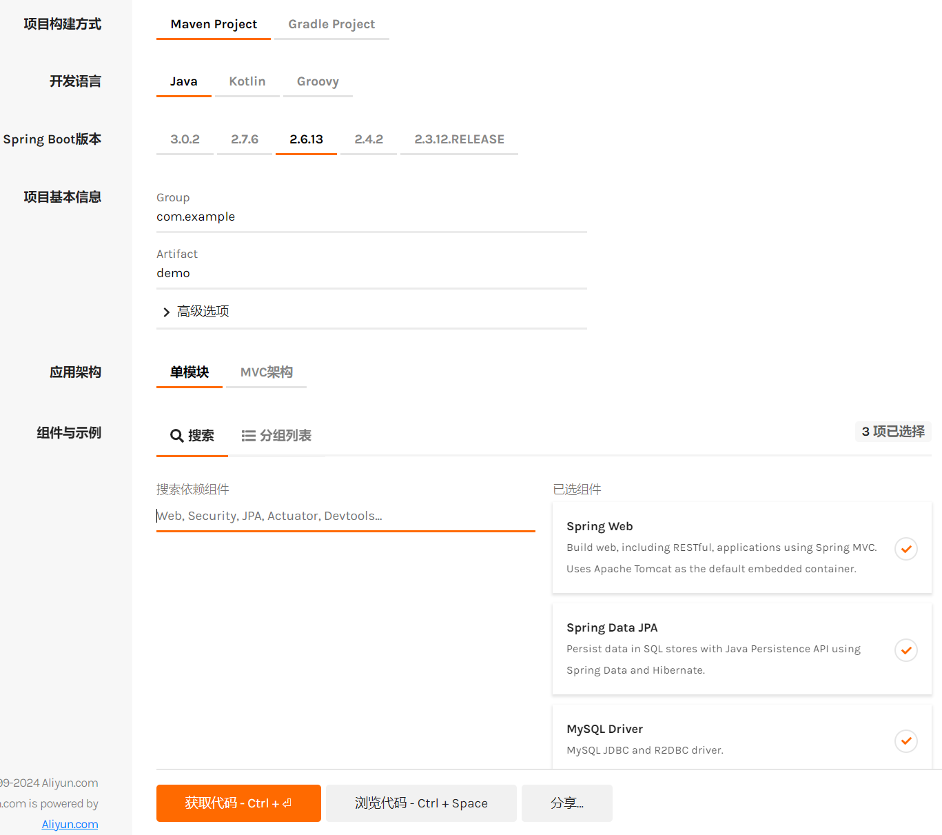 通过 idea 或者如下网站快速构建一个模版项目: