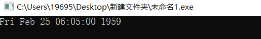 #include #include #include int main() { struct tm t; t.tm_sec = 0; t.tm_min = 5; t.tm_hour = 6; t.tm_mday = 25; t.tm_mon = 1; t.tm_year = 59; t.tm_wday = 5; puts(asctime(&t)); return(0); }