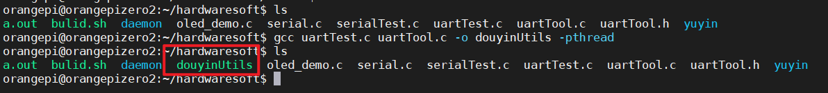 gcc uartTest.c uartTool.c -o douyinUtils -pthread