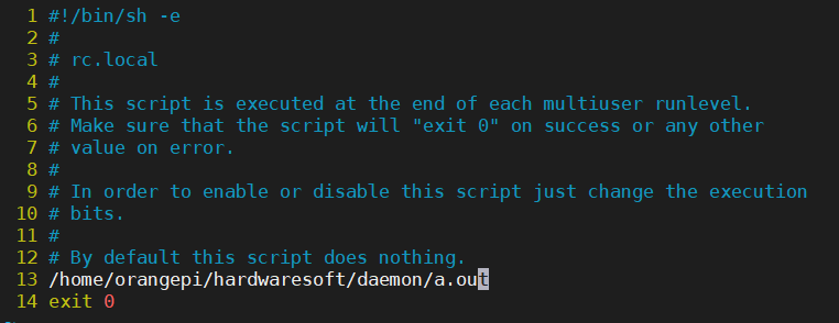 sudo vi /etc/rc.local /home/orangepi/hardwaresoft/douyinUtils /dev/ttyS5 & /home/orangepi/hardwaresoft/shouhuDouyin exit 0