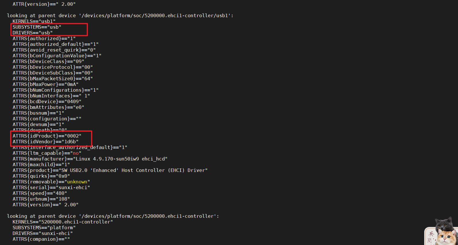 查看更为详细的信息输入指令 udevadm info --attribute-walk --name=/dev/bus/usb/001/002