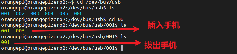 文件中,可以看到003是我接入的手机文件,当我拔掉之后就没有了
