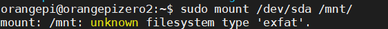 1.如果报错mount:unknown filesystem type ‘exfat‘,是因为在 ubuntu下,由于版权的原因,默认不支持 exfat 格式的 u 盘,