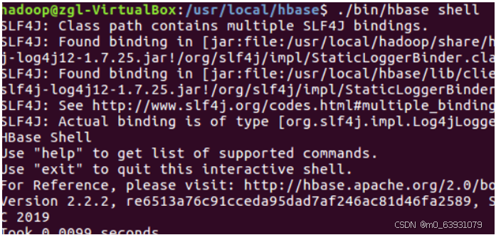 2.在Hbase中使用Shell命令的时候,需要注意退出之后,要重新使用对应的进入命令才能继续使用Shell命令操作Hbase。