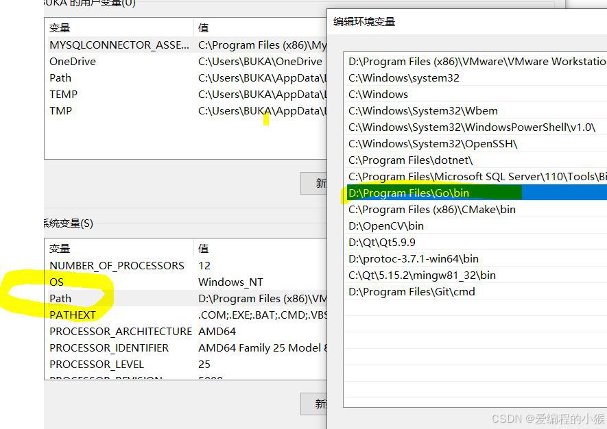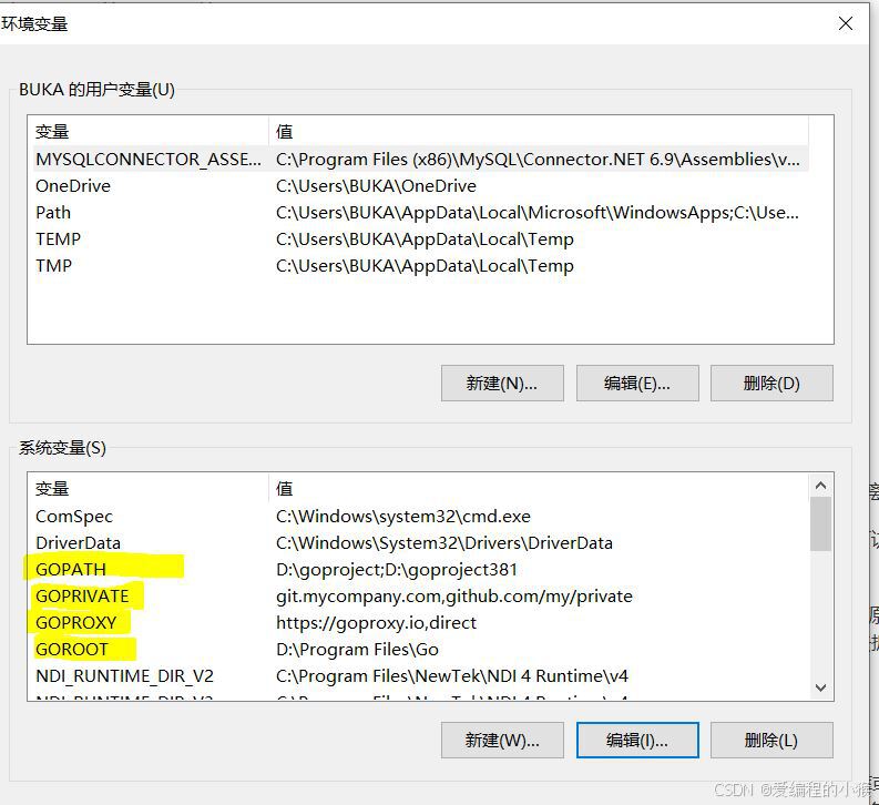 在命令提示符上输入go env查看环境变量 可以通过以下命令更改也可以通过环境变量直接更改