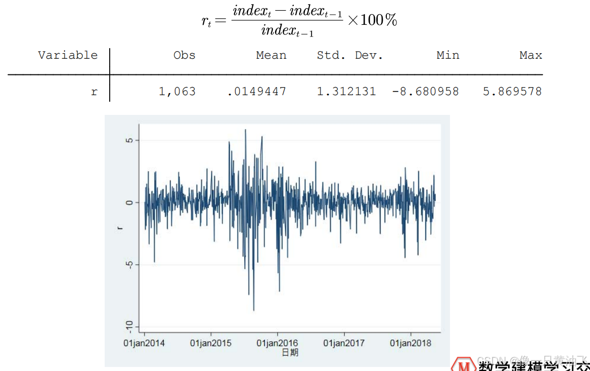 因此,我们对原始数据进行处理,计算其收益率,所用公式如下:
