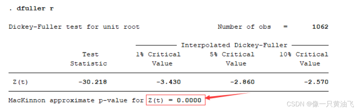 下面,我们进一步检验收益率序列有无单位根,利用Stata做ADF检验,得到的结果如下表所示: