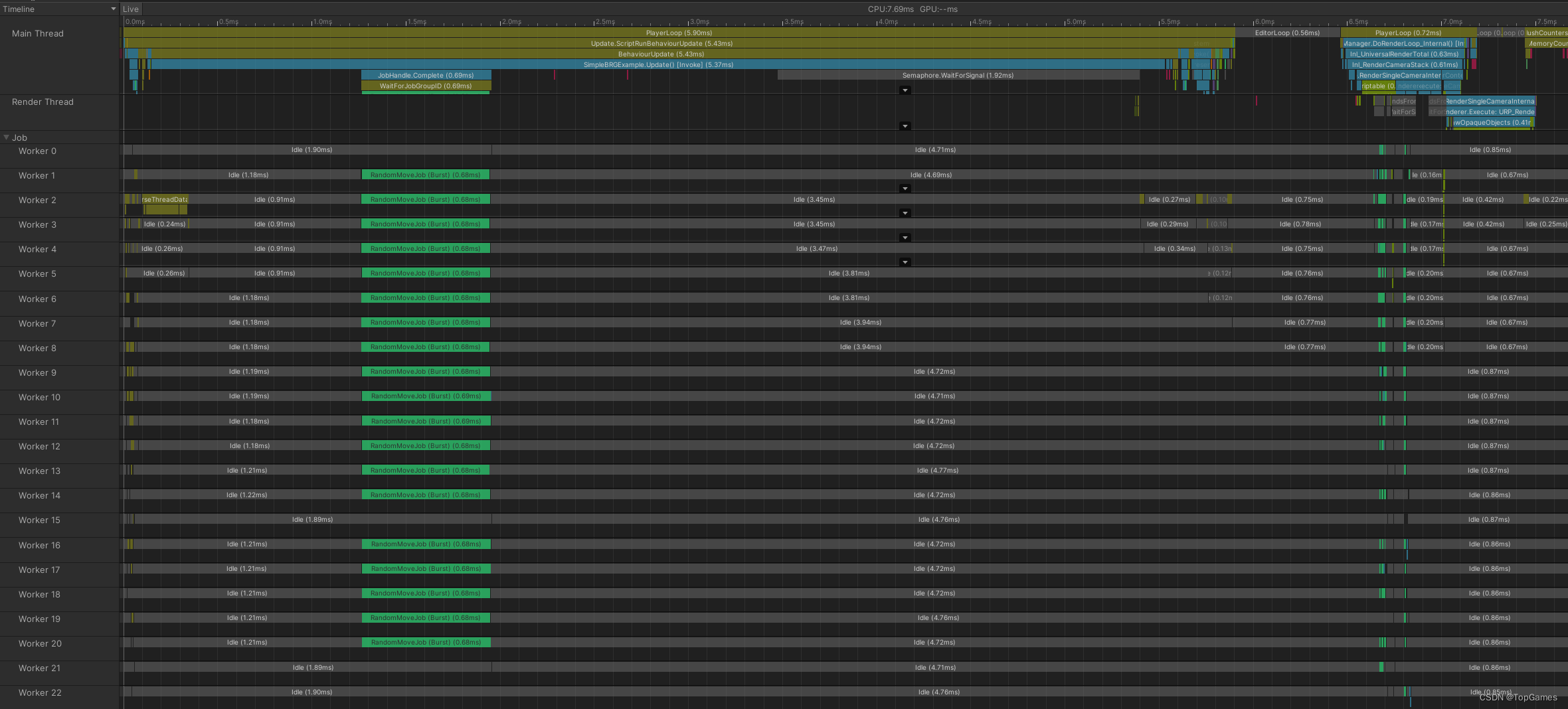 当数量级庞大时,即使Job System + Burst编译再怎么开挂,主线程也会拖后腿的。