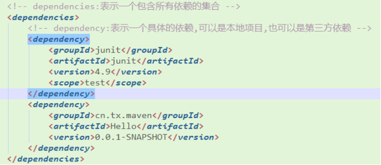 我们可以在POM文件中的dependencies元素内指定依赖关系。