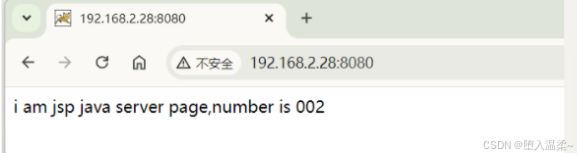 #使用echo写测试页面 [root@002 ~]# echo "i am jsp java server page,number is 002" > /usr/local/tomcat/webapps/ROOT/index.jsp #启动服务 [root@002 ~]# /usr/local/tomcat/bin/startup.sh #关闭防火墙 [root@002 ~]# systemctl stop firewalld
