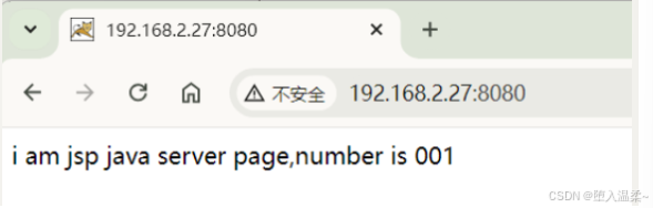 #使用echo写测试页面 [root@001 ~]# echo "i am jsp java server page,number is 001" > /usr/local/tomcat/webapps/ROOT/index.jsp #启动服务 [root@001 ~]# /usr/local/tomcat/bin/startup.sh #关闭防火墙 [root@001 ~]# systemctl stop firewalld