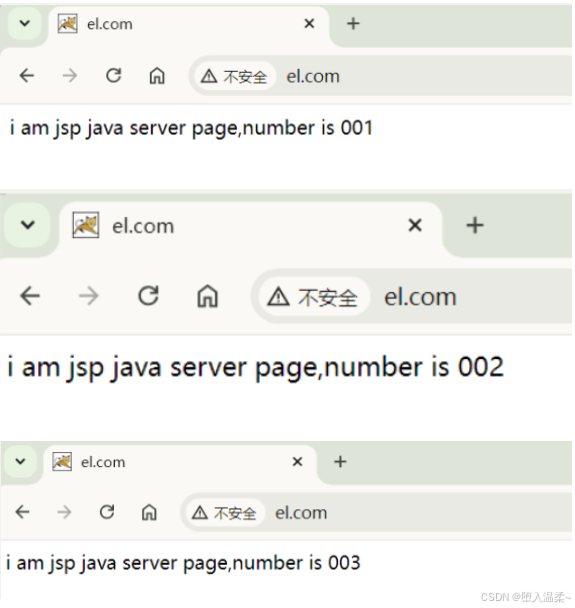 在浏览器上输入域名:https://blog.csdn.net/qq_70752758/article/details/www.el.com,就可以访问到001、002、003的测试页面,刷新页面可以轮询哦