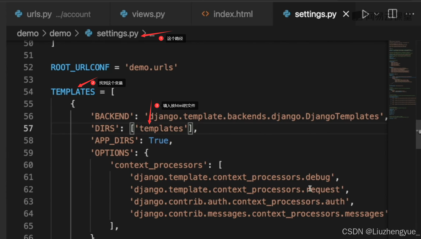 注意:这里我们要将所有的html文件全部放在templates文件夹里面,并且在全局的文件setting.py里面