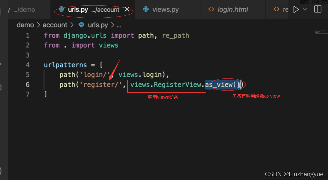 from django.contrib import admin from django.urls import path, include urlpatterns = [ path('account/', include('account.urls')),#使用include函数引入,表示account应用下的路由(urls)文件 path('admin/', admin.site.urls ]