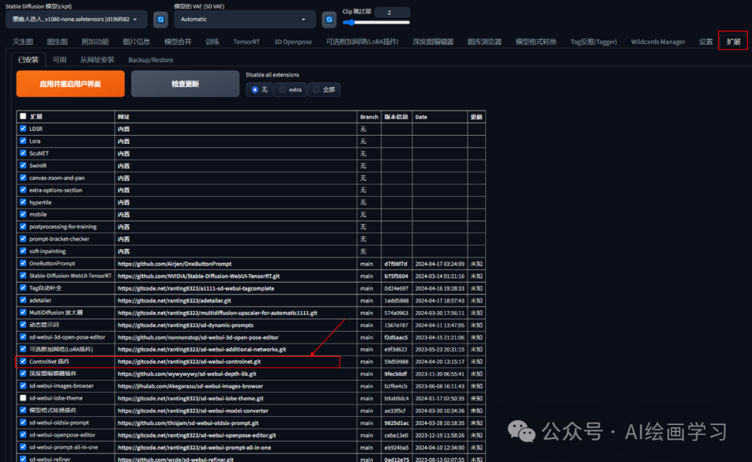 你如果用的绘世启动器,最新版已经内置了ControlNet插件。
