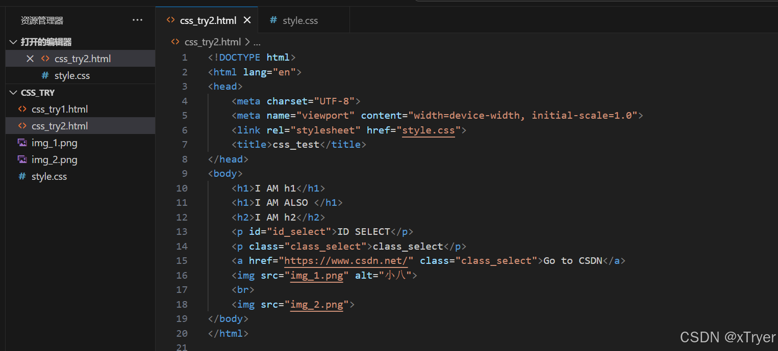 给HTML文件增加CSS样式主要有两种方法,第一种方法是直接添加在HTML文件内部,但这种方式不太美观优雅,一般建议第二种方法——创建一个.css后缀的文件,然后链接HTML文件与该css文件。但二者在写法上并没有太大区别,只是笔者更加倾向于使用第二种方法,因为第二种方法在后期处理起大型网页时更加清楚方便,在后面的介绍中也会以第二种方法呈现。