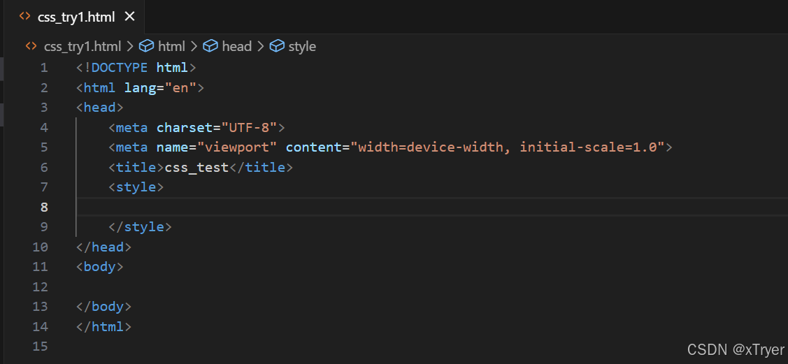 然后我们可以在head部分的title元素后添加一个style元素,表示CSS样式表。