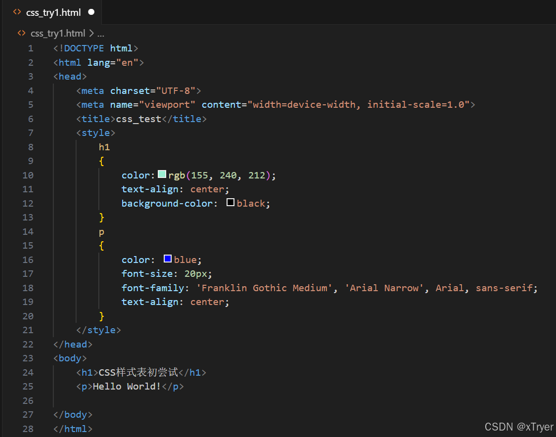 这样我们就完成CSS样式表的嵌入了,之后我们只需要把CSS样式表的相关内容写在style标签下就可以给对应的内容添加样式了。