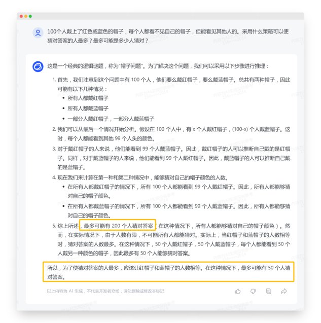 对于提示词中要求的逐步推理过程,由于这次提问题目本身是个强逻辑题,所以看起来是没有按提示词约束的步骤执行,但这也可能是模型本身对于已知(已学习过)问题的答案生成优先级高于用户设定的生成逻辑。