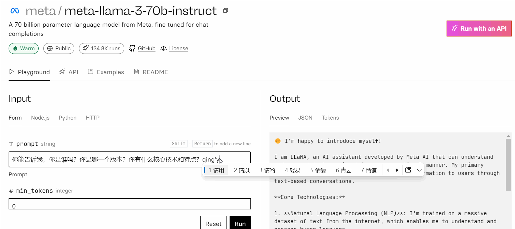 体验地址::meta/meta-llama-3-70b-instruct – Run with an API on Replicate