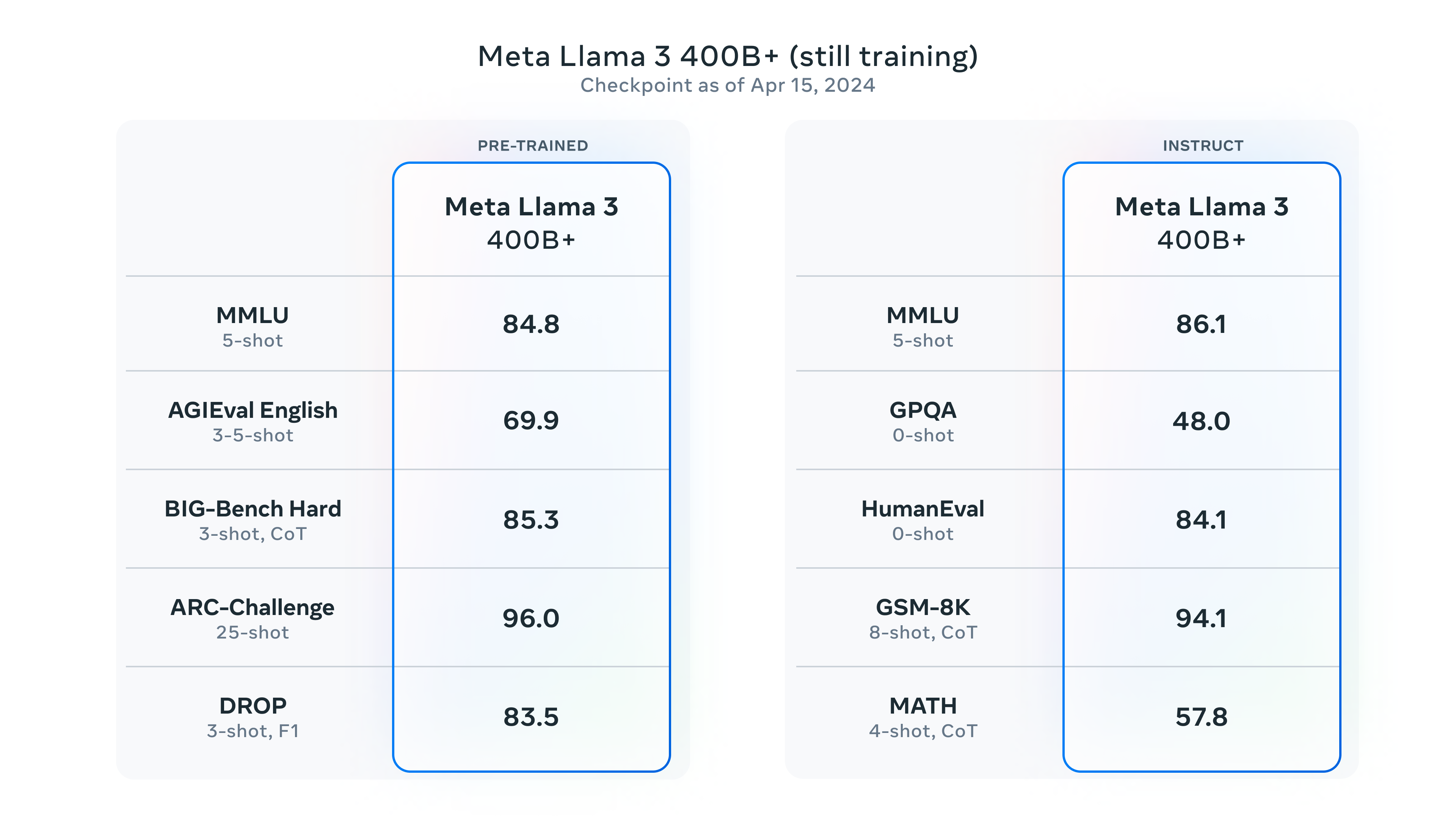 ● 开放平台:Llama 3将可用于AWS、Databricks、Google Cloud、Hugging Face等多个平台,并支持AMD、NVIDIA等硬件。