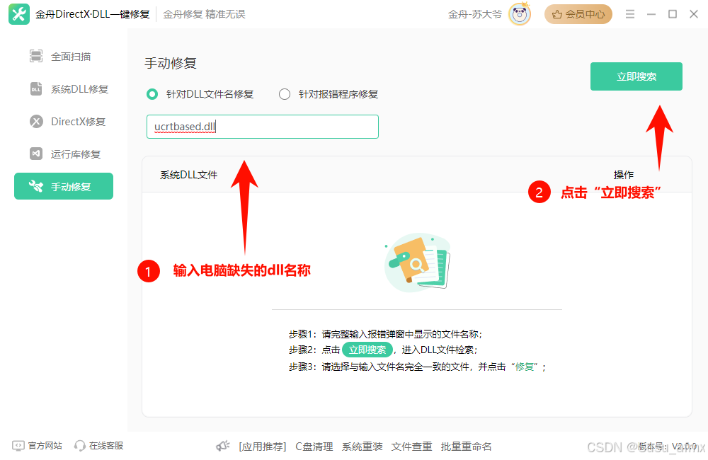 步骤3:比如ucrtbased.dll,点击立即搜索。