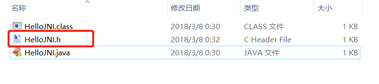 执行上述命令后,在 D:/JNI 目录下多出了个 HelloJNI.h 文件: