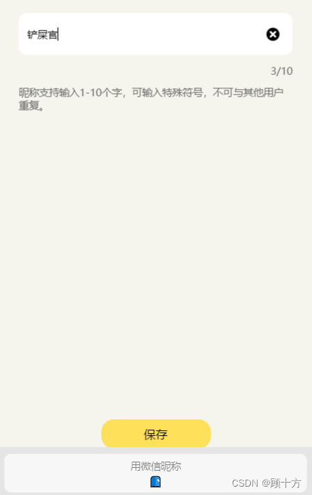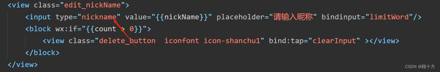 {nickName}}" placeholder="请输入昵称" bindinput="limitWord"/> {{count}}/10 昵称支持输入1-10个字,可输入特殊符号,不可与其他用户重复。