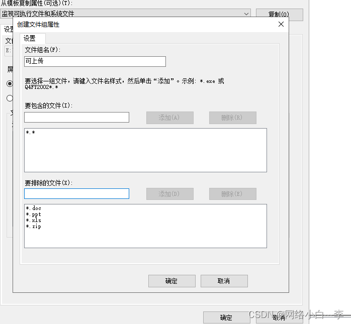 在要排除的文件中填写*.doc *.ppt *.xls *.zip四种文件,点击确定