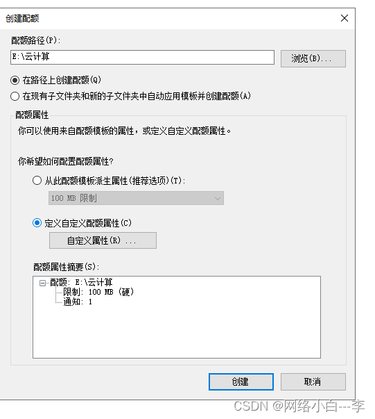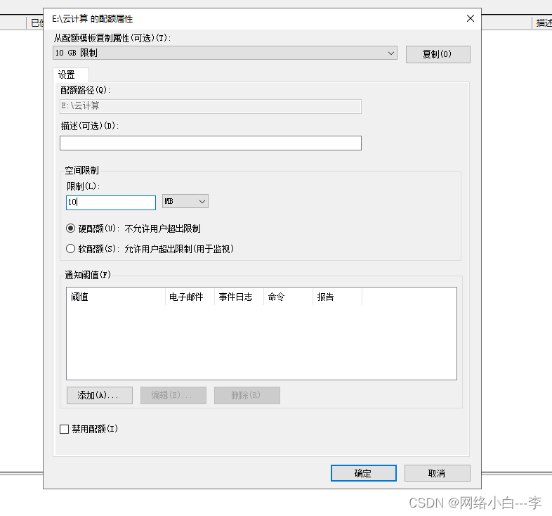 点击空间限制,指定配额大小,点击确定