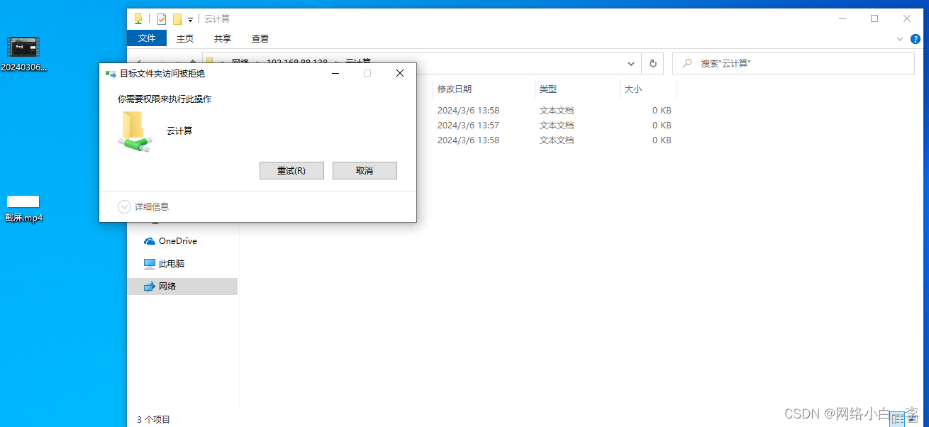 我们打开另一台虚拟机,把事先准备好的文件拖进文件夹,会显示访问被拒绝,需要权限来执行