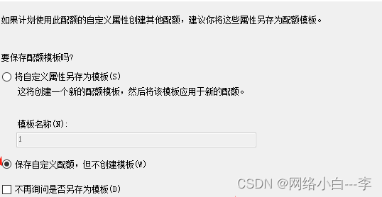 填写模版名称,点击保存自定义配额,但不将该模版应用于新的配额,点击确定